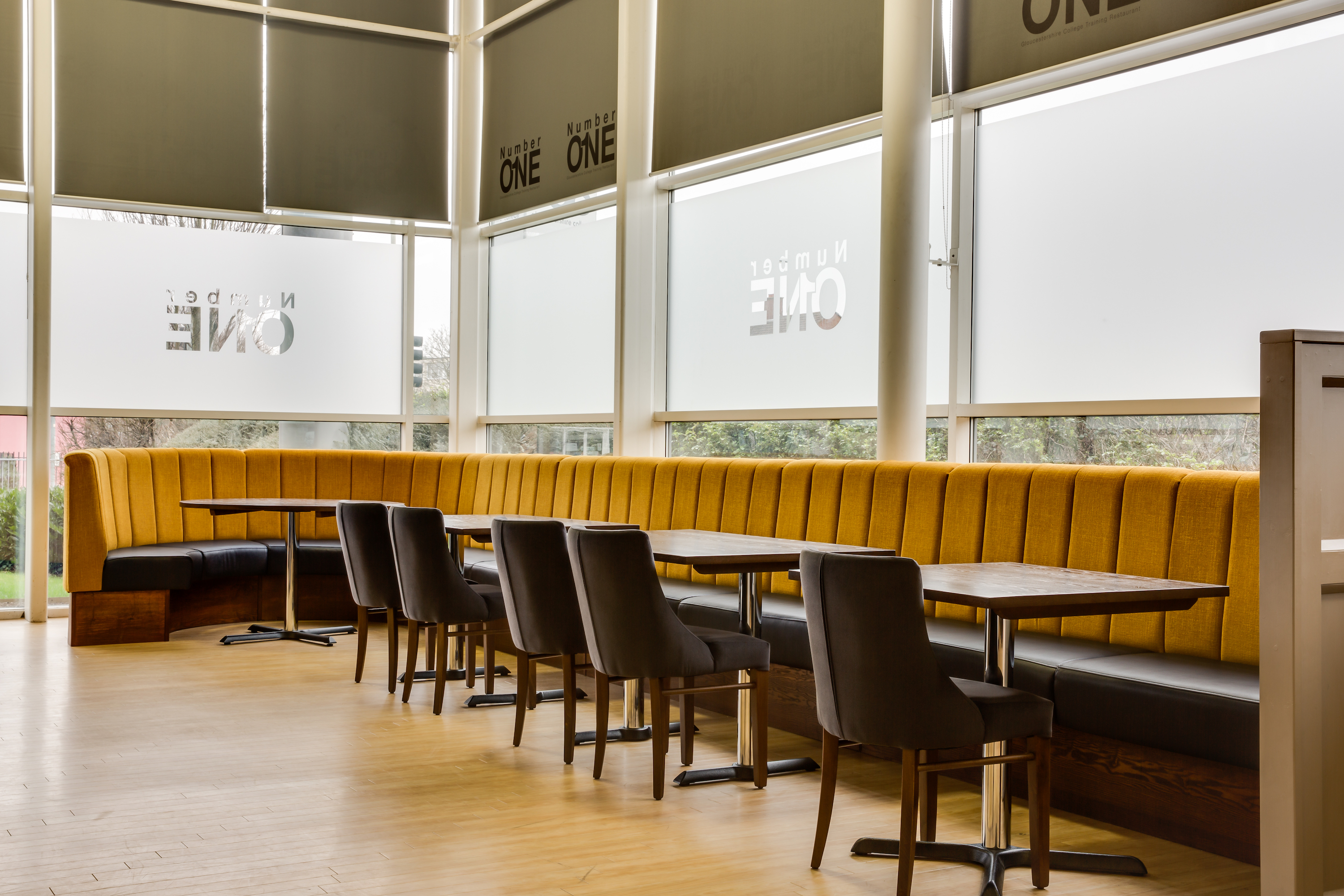 Decorated in deep blues and mustard yellows, at Restaurant Number One you’d be forgiven for feeling like you’re anywhere but a college campus.