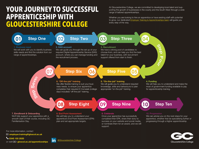 Our Employer Training & Apprenticeships team offers no-obligation consultations and recruitment support for companies exploring apprenticeships to train their new or existing staff. Reduce your training costs with us today and discuss your training needs. Get in touch by email: employer.training@gloscol.ac.uk or call on 0345 155 2020
