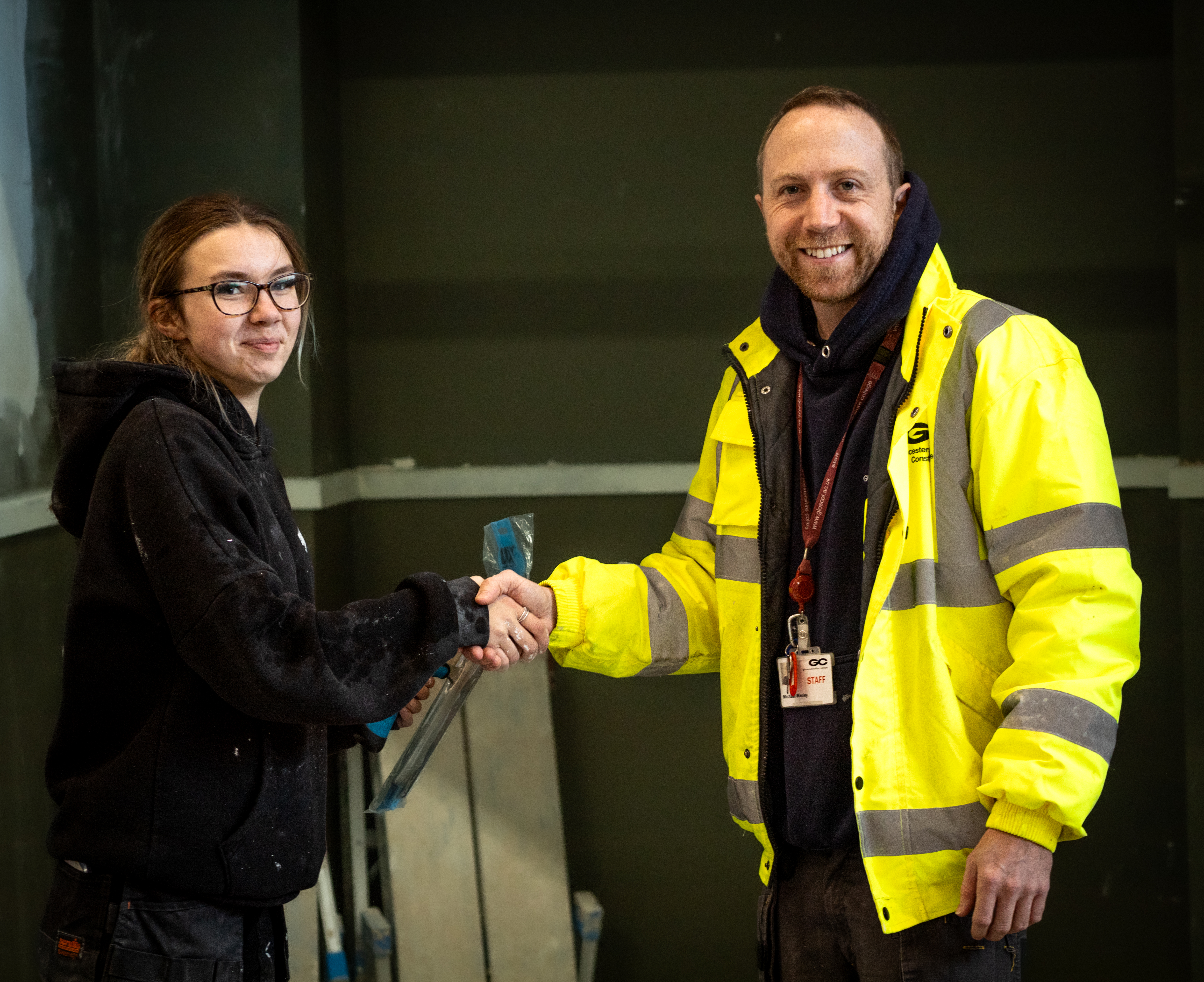 Since the start of the academic year, Hailie Miller, one of our Multi Skills students, has demonstrated exceptional drive and a genuine passion for construction and plastering. She has shown great dedication and resilience, standing out as the only female student in her group, and continues to pursue her ambition to progress, learn new skills, and develop her knowledge in the STEM field.