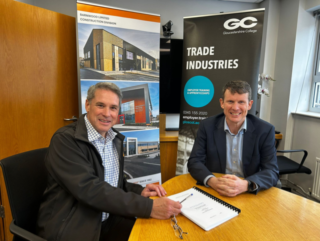 Gloucestershire College (GC) and Barnwood Construction have formally signed a new strategic partnership that will see Barnwood’s emerging construction managers train through the College’s Level 4 Construction Site Supervisor/Construction Management Apprenticeship.